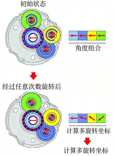 多圈绝对值:依靠齿轮组或电子计数,记录圈数+角度,断电仍可记忆。类似于钟表的时针和分针关系。